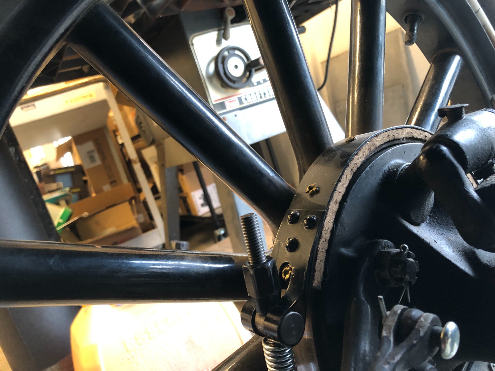 I have my period small drum accessory brakes adjusted to come on just after the transmission brake.Al Meadows wrote: ↑Wed Feb 14, 2024 3:13 pmThanks, Mark, for the encouraging words. I installed these myself a few years ago and they worked fine after a few adjustments. They performed so well in fact that after about 100 miles my rear spokes started making noise. Turns out that because my primary braking power was now grabbing the brake drums instead of slowing the axle, it loosened up my hub bolts. I had peened them 50 years ago with no issues but the outside brake operation loosened them. I restaked them with prejudice and that problem has not resurfaced.