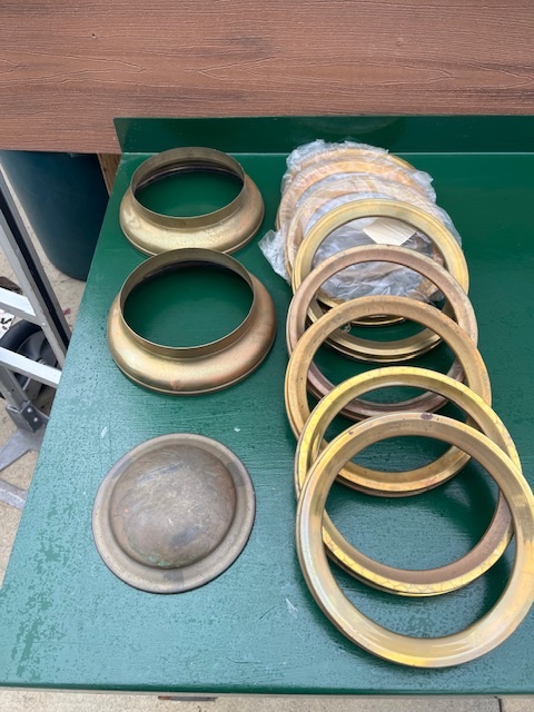 New spinnings for E and J 666 brass headlights. Doors, $40 each, bezels $35 each, back, $20. All plus shipping. kdmks AT att.net.