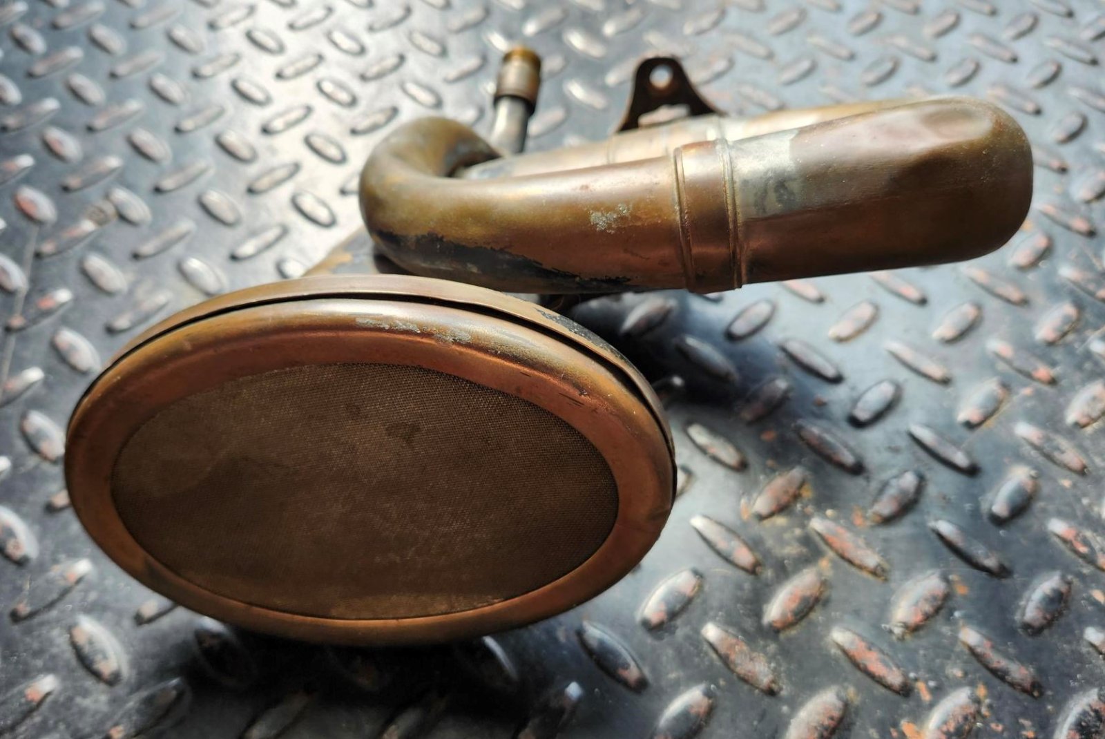 SoId to Paul! Here is an original 1913 to early 1915 Rubes horn. It has its share of bumps and bruises. It would be good for an unrestored car or ? Take a look at the photos, you get what it is.