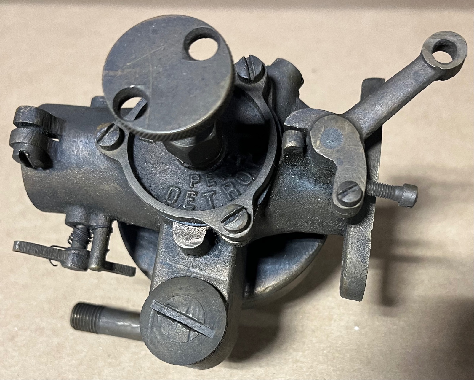 Nice rebuildable 1912 Holley H-1 Carburetor Core. 3 screw style with air pipe clamp. Good brass bowl even the choke spring is good. $300.00 plus shipping. Lang’s 1-800-872-7871