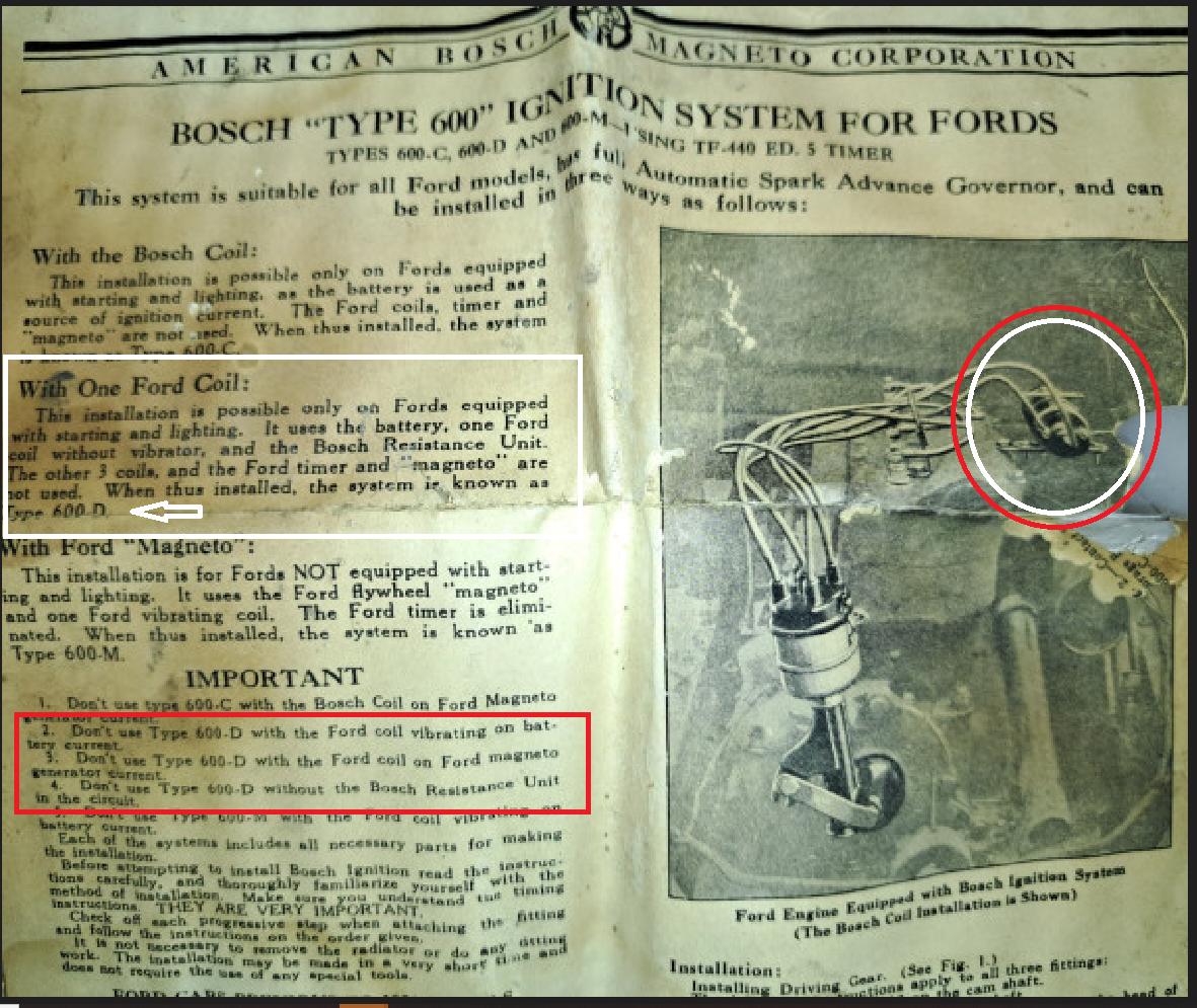 magneto for power & one Ford coil. The 600-A used the stating & lighting battery W/ a resistor & one ford coil W/ the vibrator screw run down.