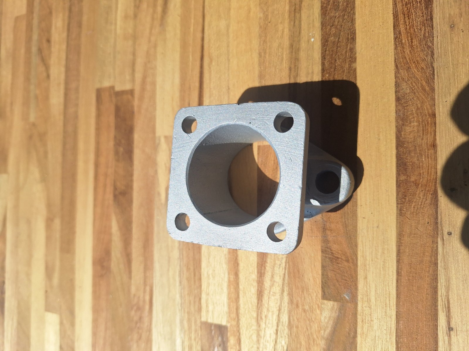 Aluminum adapter. 1 1/2" x 1 1/2" oval to square flange.