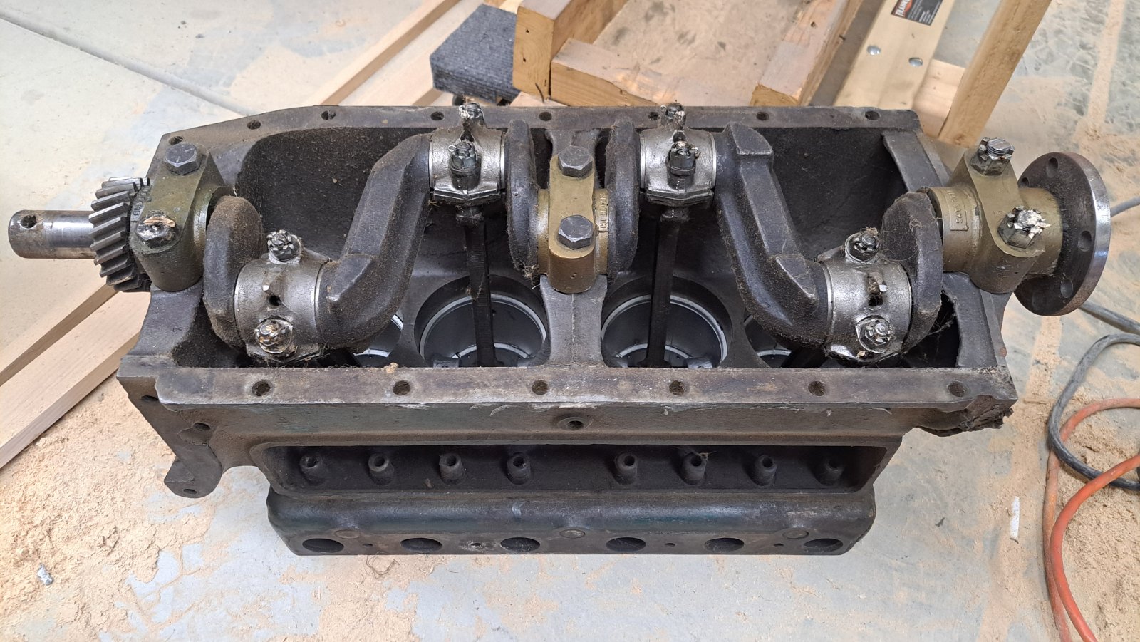 26/27 engine block with heavy duty chevrolet crankshaft, rods and Jahn's .040 pistons installed. Heavy duty bronze main bearing caps. Babbitt appears new. Price is $2,000. Pick up in Lake Elsinore. Mark Chaffin (951)805-0928