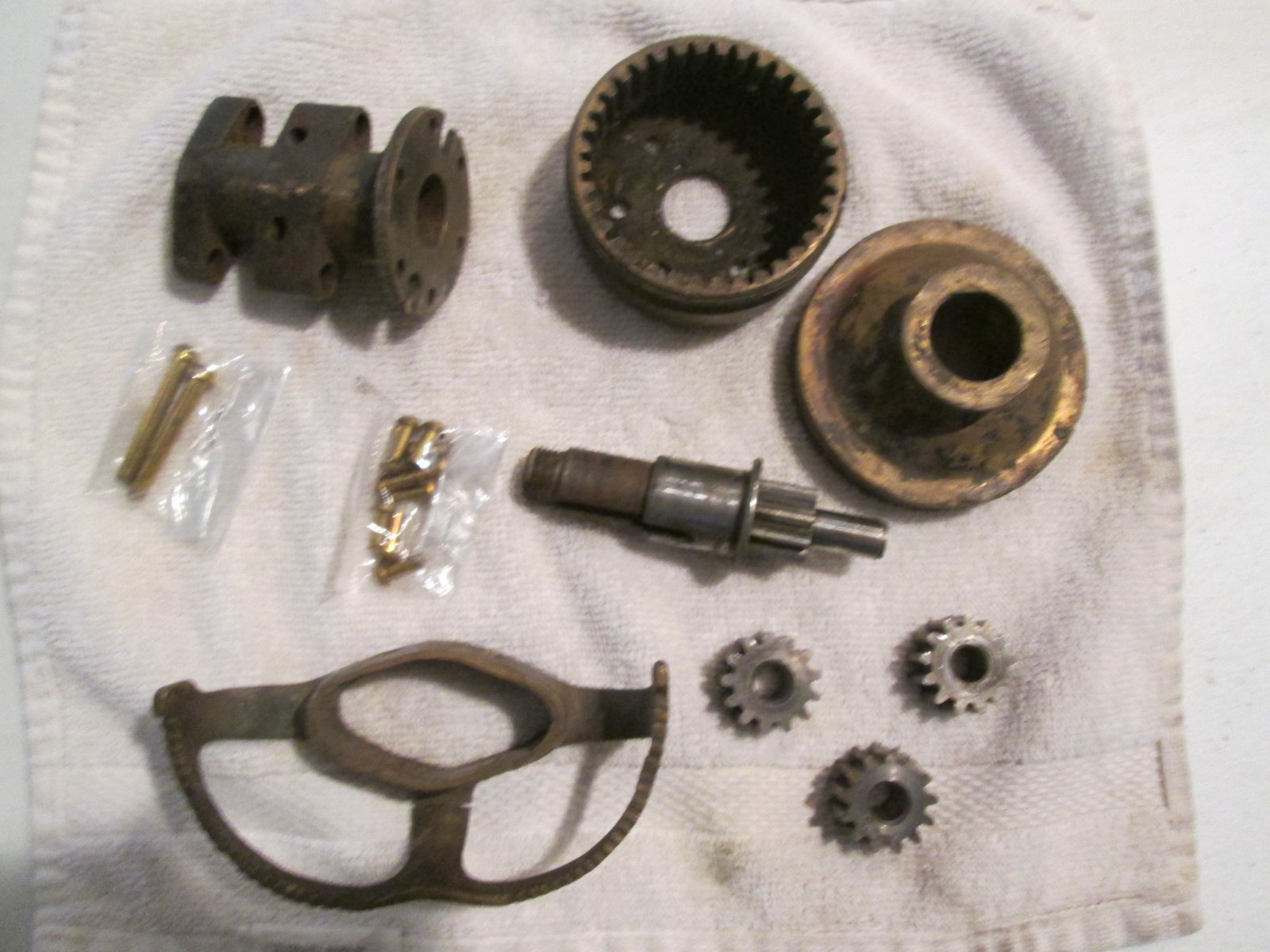 Pre 1914 Steering Column base, cover and quadrant. Also includes the shaft and the 3 planetary gears. $100.00 plus shipping