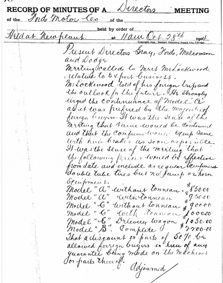 A review of the Board Minutes from those days show that both Dodge Brothers were heavily involved in Ford Motor Company and had a major hand in the specification for the Ford Factory at Piquette.