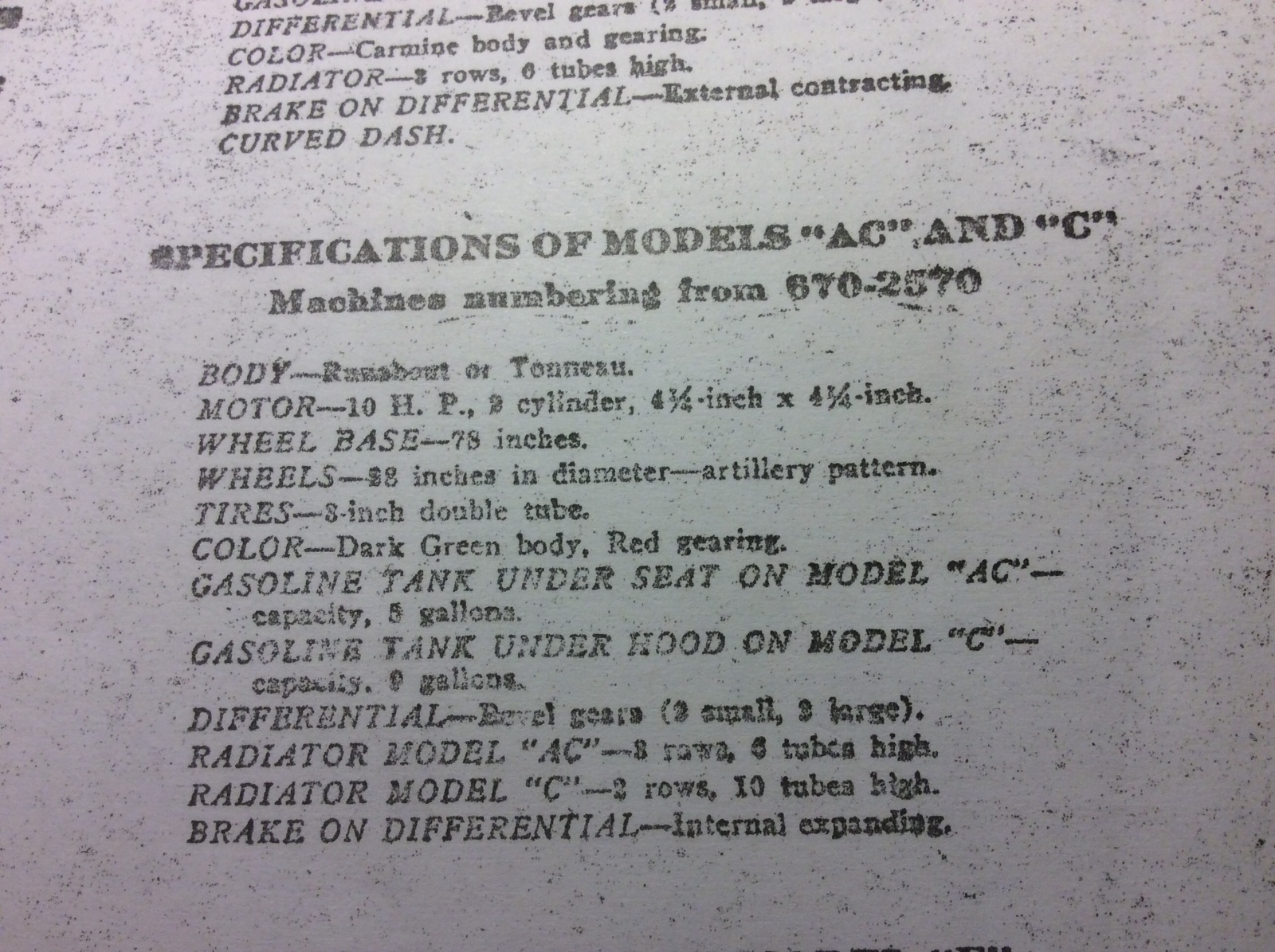 One clarification. Ford did not produce a Model AC. The Model A began with an 8hp motor that was later upgraded to 10hp. The same 10 hp motor was used on the 1905 Model C. Parts books may have referred to some components as "AC" because they were used on both models.