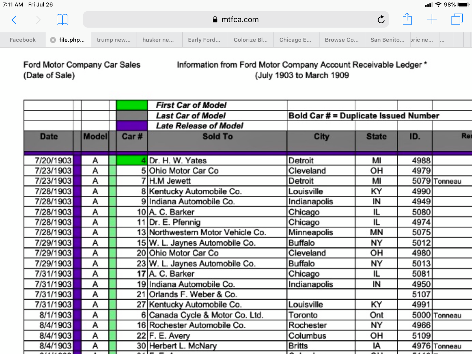 Rob, It would be great to talk to Trent, and perhaps he is monitoring this. He’s not been very active on the forum but has been on time and again. Perhaps asking an accounting professional would be helpful. Possibly the two columns is a method to reconcile things. I’m guessing the entry’s to the left were done later, but just guessing. It’s clear that Dr Ernst Pfenning made the ledger book a couple pages before Yates did. That’s good enough for me but I’m a simpleton. Also, way back in time Dr Pfenning was given credit by most when details were still fresh in minds. I hate to throw this out there, but perhaps much later revisionists didn’t like the fact that an obviously Germanic sounding person was the first paying customer of the great FoMoCo. ?? ? Nationalism and anti immigrant isn't a new idea. I’ll post something a bit later that shows a car was sold a week before either of them. How’s that for some muddy waters ?