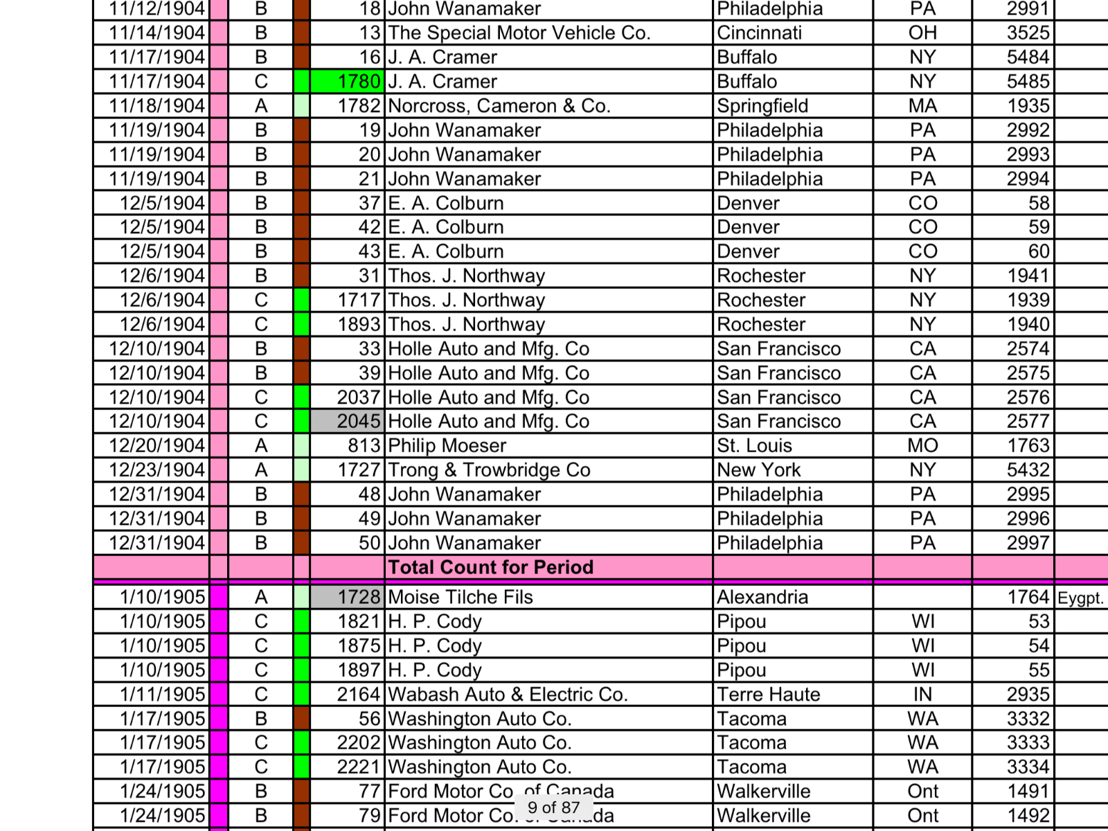 I agree, the Wannamaker C sales do look like probable B numbers. And the I.D. numbers are in sequence, for what that’s worth. Initially I thought maybe the I.D.# had something to do with when the order came in, or time between order/testing/receiving cash and when the car shipped. However, that theory seems to blow up with several double digit I.D.#’s at the same time other numbers are in the 2 and 3 thousand range. Where’s Trent when you need him.......